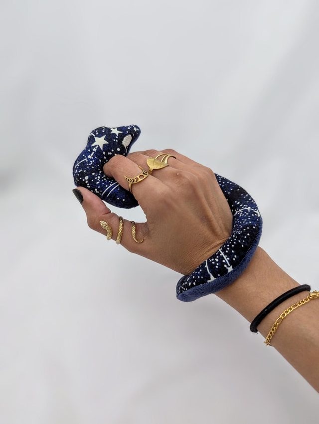 Serpent peluche bleu étoilé