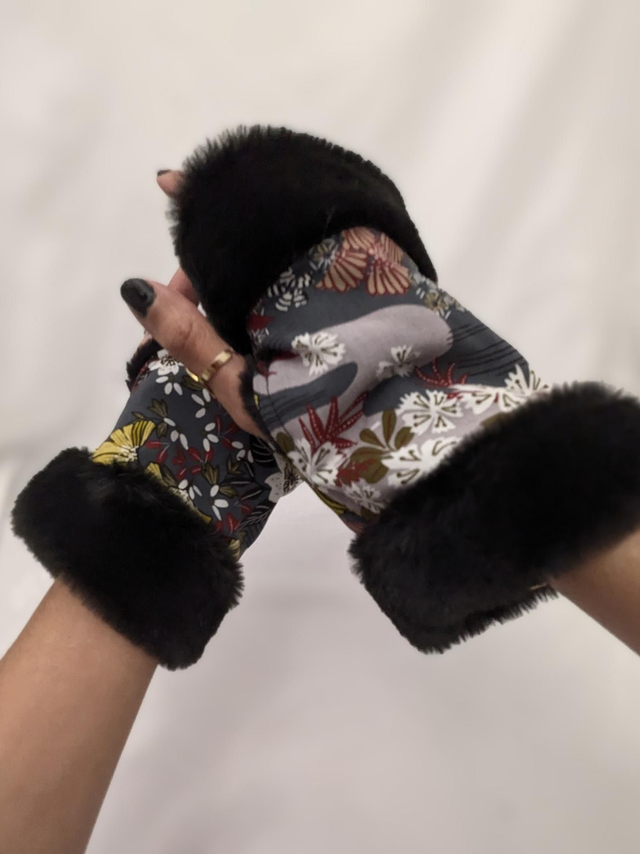 Mitaines noires et tissu japonais